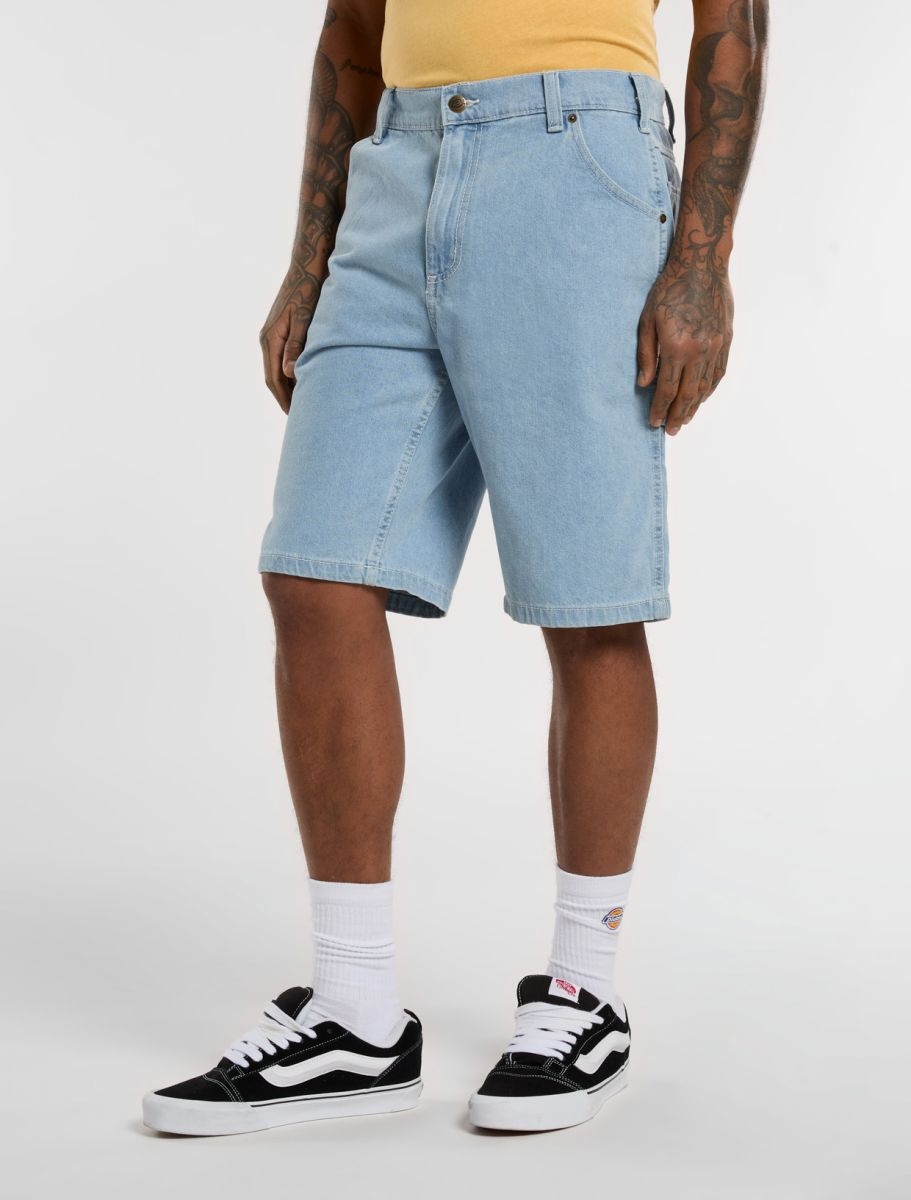 La bermuda Dickies Garyville es un básico de verano de Dickies con un corte recto, una longitud regular y detalles de los Carpenter. Con una práctica trabilla de martillo y un bolsillo para herramientas inspirado en la ropa de trabajo, también puedes guardar tus pequeños objetos de valor en los dos bolsillos traseros redondeados y en el bolsillo frontal para monedas. Estos clásicos vaqueros cortos funcionales están diseñados para durar, fabricados con nuestro resistente denim y cuentan con unas llamativas costuras.