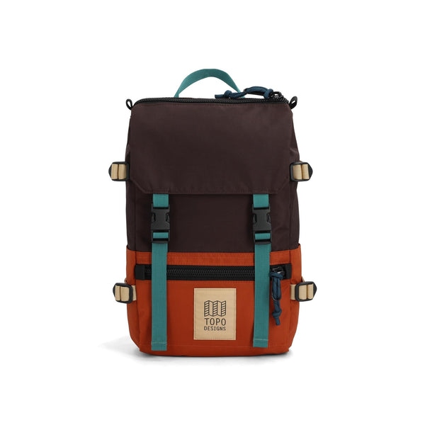 El siguiente detalle pequeño. El Rover Pack Mini está hecho de nailon reciclado resistente al agua con un cierre superior con cincha. Un bolsillo frontal exterior y un bolsillo con solapa superior brindan un acceso rápido a artículos más pequeños y una funda interna para tableta mantiene tu tecnología segura. Los bolsillos laterales deslizantes pueden contener fácilmente bocadillos o equipo adicional.